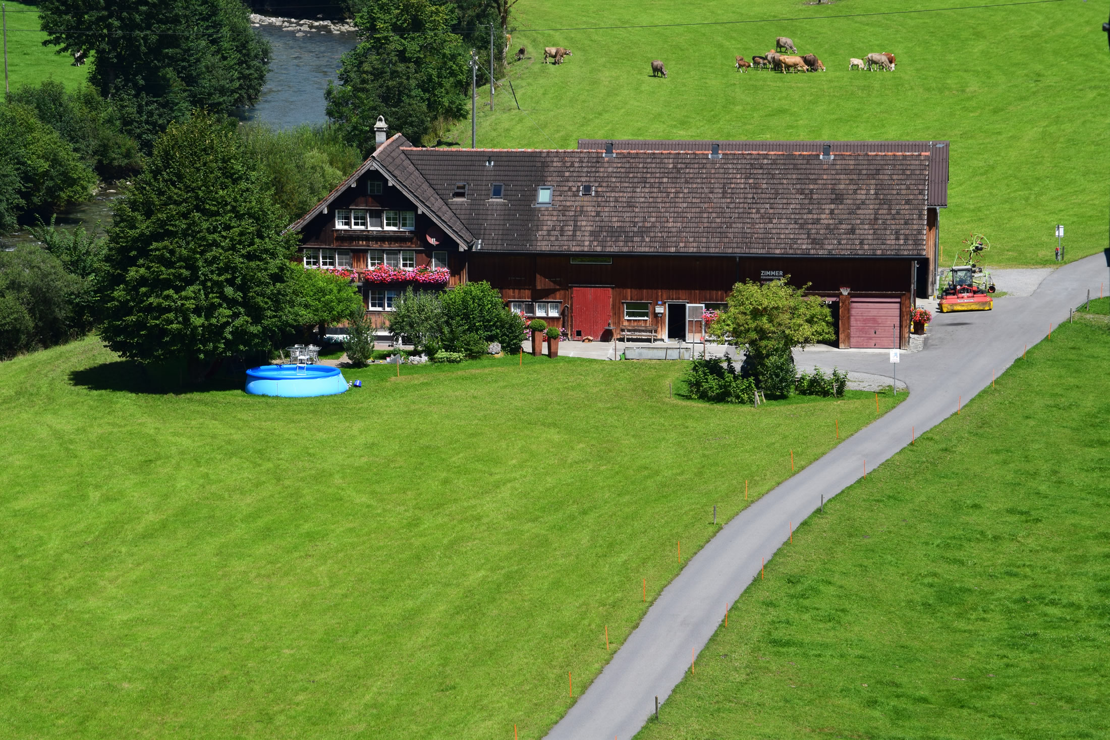 Our homelike, comfortable holiday flat is located in the second floor of our farm and has a separate entrance. The flat was renovated 1997 in the rustic style of Appenzell.